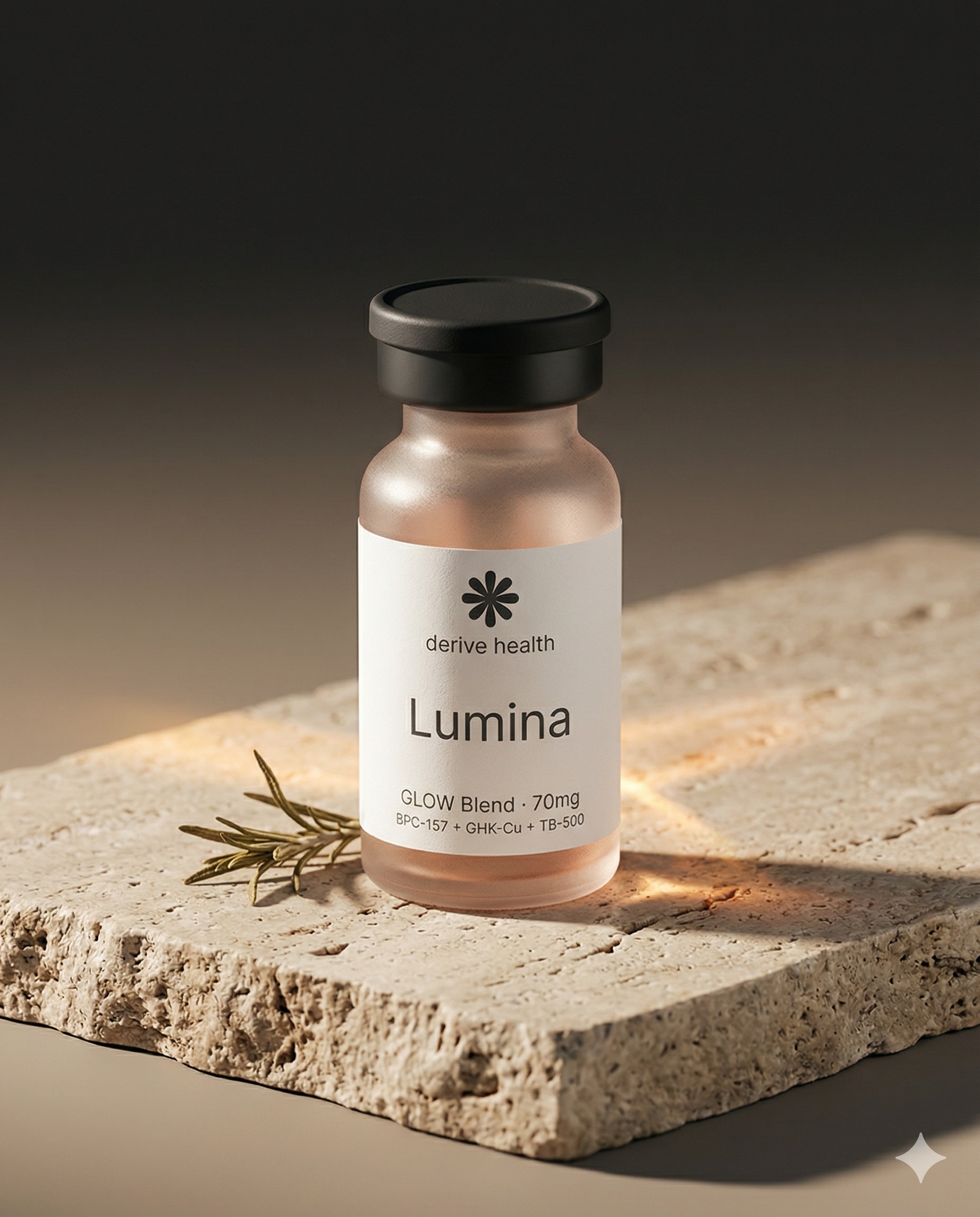 Our flagship GLOW Blend combines BPC-157, TB-500, and GHK-Cu for collagen production, tissue repair, and anti-inflammatory support — all in one.